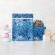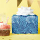 Art Nouveau, Jacobean Damask-omslagspapper av stiliserade, rullade blad och blommor, baserade på en vintage William Morris-textildesign, digitalt utökat och färgat i ljusblått på en djup marin/indigoblå bakgrund, accentuerat med vita blommor