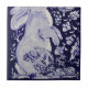 Det här är den grund-lämnat plattan i en fyrkant - liten mural eller den översta plattan i en två=liten mural färg är mörk blått nyanser för riken med vitt. En nyfiken kanin och två fåglar besöker i denna fantasi-trädgård, inspirerad av jakobanska blommigtar, liksom Delft, Dedham och chinoiserie antique-pottery. Tuzi Williams unika konst och design.