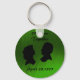 JADE ANNIVERSARY-KEYCHAIN - ON BRUSHED JADE—GENT AND DAM IN SILHOUETTE MED EN BEACH OCH DUNES SUNRISE-ADD MED EGET DATUM ELLER KVOT - GÖR EN UNDERBAR GIFT.