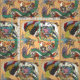 Jade Dragon och Guld Phoenix leker med pärlor Tyg