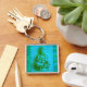 Jade Kwan Yin Fyrkantig Silverfärgad Nyckelring