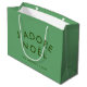 Snyggt J'adore Noel' citerar en helgdag presentsäck med modern, minimalistisk typografi i skoglig grönt på en sage grönt bakgrund i ett trendig festive stil.Citatet översätts till "I kärlek christmas" i Fransk. Hälsning, namn och år kan lätt vara personlig för att perfekten för säsongen i julafton ska kunna stå ut från folkmängden! #jadorenoel #presentbag #christmas
