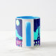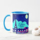 Kaffe mugg på en reseaffisch i Paris under en djup blå stjärna himlar med fullt måne och texten "J'adore Paris"
