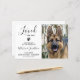 Låt din bästa hund tillkännage din bröllop med dessa moderna och eleganta "I Loved Her First" (Jag älskade henne först) postkort för att spara datum. Dessa bröllopsinbjudningskort har möjlighet till kuvert. Anpassa med ditt favoritförlovningsfoto, hundens foto eller foto med hunden och anpassa med namn, datum och bröllopsplats. Dessa hundbröllopsinbjudningar är ett måste för hundälskare och hundmammor! COPYRIGHT © 2020 Judy Burrows, Black Dog Art - Alla rättigheter förbehållna. Budget I Loved Her First Hund Bröllop Spara Datum