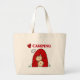 En koppla ihop av stick figurungar kikar ut från det röda tält, och text läser "(hjärta) campa" mig älskar på att campa T-tröja, muggar, kort, mousepads, tote bags, och andra campa dräkt- och gåvaobjekt.