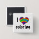 Jag älskar att färglägga regnbåge hjärta design knapp