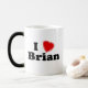 Jag älskar Brian! Är ditt namn Brian? Har du en fru, en flickvän, en kvinnlig familjemedlem eller en kvinnlig vän som du vet kärlekar dig? Eller har du en make, en pojkvän, en male familjemedlem eller en manlig vännen namngav Brian som du älskar djupt? Om så, är denna "som jag älskar" muggen, exakt gåvan som du söker efter! Designen presenterar brev "mig" i svart bokstäver med en röd hjärta på det bästa och "Brianen" i svart bokstäver på grunden.