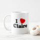 Jag älskar Claire! Är ditt namn Claire? Har du en make, en pojkvän, en male familjemedlem eller en manligvän som du vet kärlekar dig? Eller har du en fru, en flickvän, en kvinnlig familjemedlem eller en kvinnlig vän som namnges Claire som du älskar djupt? Om så, är denna "som jag älskar" muggen, exakt gåvan som du söker efter! Designen presenterar brev "mig" i svart bokstäver med en röd hjärta på det bästa och "Clairen" i svart bokstäver på grunden.
