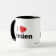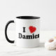 Jag älskar Damien! Är ditt namn Damien? Har du en fru, en flickvän, en kvinnlig familjemedlem eller en kvinnlig vän som du vet kärlekar dig? Eller har du en make, en pojkvän, en male familjemedlem eller en manlig vännen namngav Damien som du älskar djupt? Om så, är denna "som jag älskar" muggen, exakt gåvan som du söker efter! Designen presenterar brev "mig" i svart bokstäver med en röd hjärta på det bästa och "Damienen" i svart bokstäver på grunden.