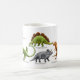 Original- konstdesign av en variation av den inklusive tyrannosaurusen för Pre-Historiska dinosaurs Rex, Hypsilophodon, Stegosaurus, Elasmosaurus, Brachiosaurus och Triceratops av konstnären och formgivare Carolyn McFann av studion för två spinnakatter som skrivs ut på en kvalitets- kaffemugg för dinosaur- och paleontologyfläktar.