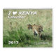 Kalender för TVÅ SIDA som "JAG ÄLSKAR KENYA" som är tillgänglig i 3, storleksanpassar. Djurlivfotografi av din sakkunniga safari, Christine Eichin, över och det okändaafrika, 1-877-GO-ON-SAFARI, www.YourSafariExpert.com. (Servalen, den svart noshörningen som är lejon parar, cheetahen, Waterbuck parar, lionessen & ungen, schimpansen, servalen, elefanter, leoparden, vanligt zebror, giraffet & cheetahen och Maasai krigare),