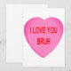 Jag älskar dig Bruh Alla hjärtans dag kort. Ljust rosa hjärta med röda bokstäver. Trendigt, roligt, minimalistiskt, klassiskt formspråk. Se den här bilden på andra presenter, kolla nedan. Tomt insidan så att du kan skriva ett personligt meddelande. Köp detta till din favorit-Bruh. Köp till Alla hjärtans dag, Glad födelsedag, Jul eller bara så.