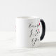 Denna design skapades genom digital konst. Den ser ut som en svart eller blå mugg tills man tillsätter varm vätska och då visas ditt personliga meddelande!
