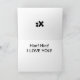 Här är ett roligt kort som säger "Jag älskar dig" på det mest utfrälsta och djärvaste sättet möjligt. Vi har stora röda läppstiftavtryck, "I Love You" i Morse-kod på framsidan och på insidan högst upp har vi Kiss-symbolen. Det är flörtigt, roligt och det finns absolut ingen chans att någon inte fattar hintarna! Men det går också att anpassa. Du kan justera grafiken och ta bort läppar eller ikoner eller morse-kod om du vill. Klicka bara på "Anpassa" för att komma till alternativen även för storlek, text osv.