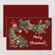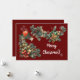 Ett vackert rött kort, den sorten som genast värmer ditt hjärta. På framsidan finns en rikligt dekorerad julgrensgren, prydd med gnistrande ornament och glittrande ljus. Strax nedanför, i elegant skrivstil, står det "God Jul."