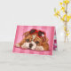Bedårande engelsk bulldoggspuppy med solglasögon, på rosa randig bakgrund, målad av konstnären Maryline Cazenave.