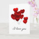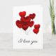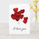 Vackert kort med röda hjärtballonger som svävar. Det perfekta sättet att säga Jag älskar dig. Tomt insida för dina egna ord.