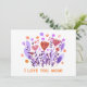 Söta retro doodle akvarellblommor med violett och korall. Retro floral illustration med jag älskar dig mamma not. Anpassa detta med ditt namn, företag eller vad du vill!
