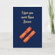 Detta enkla kort är dekorerat med bacon på framsidan och det söta meddelandet, Jag älskar dig mer än Bacon. Det skulle vara perfekt för en födelsedag, Fars dag, Mors dag, Alla hjärtans dag eller någon speciell tillställning.