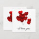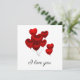 Vacker jag älskar dig kort med flytande röda hjärtballonger design.