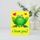 Jag älskar dig Söt tecknad groda hjärtan gul Vykort