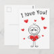 Jag älskar dig Stickfigur söta hjärtan Vykort