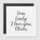 Söt personlig textmall: Kära Emily, jag älskar dig, Alexander. Klicka på redigera och ändra bara namnen eller hela texten.