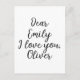 Söt personlig textmall: Kära Emily, jag älskar dig, Alexander. Klicka på redigera och ändra bara namnen eller hela texten.