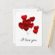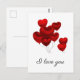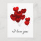 Vackert vykort med svävande röda hjärteballonger. Det perfekta sättet att säga Jag älskar dig.