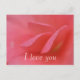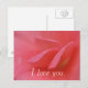 I Love You vykort med rosa rosblad. Enkelt och rakt på sak; låt dem veta hur du känner. Perfekt för Alla hjärtans dag
