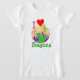 Gullig T-tröja för drakar för I-hjärta (kärlek). En gullig grön tecknaddrake med färgrika stjärnor, vingar och en stor stjärnasvan och en grönt avfyrar andningdraken, och rosadrakeflyget i himmlen mot en purpurfärgad rosa bergskedja och en stor röd hjärta med rosakärlekhjärtor och anpassadetext "drakar" älskar jag drakeutslagsplatsen. Denna toppna gulliga drakeutslagsplats för barn är fullständigt anpassadet, tillfogar din namn, texter och bilder! Underbarbarns en gåva för drake för den stora lite drakefläkten!