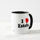 Jag älskar Esteban! Är ditt namn Esteban? Har du en fru, en flickvän, en kvinnlig familjemedlem eller en kvinnlig vän som du vet kärlekar dig? Eller har du en make, en pojkvän, en male familjemedlem eller en manlig vännen namngav Esteban som du älskar djupt? Om så, är denna "som jag älskar" muggen, exakt gåvan som du söker efter! Designen presenterar brev "mig" i svart bokstäver med en röd hjärta på det bästa och "Estebanen" i svart bokstäver på grunden.