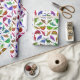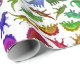 Original- konstmönster av färgrika lite Pre-Historiska dinosaurs inklusive triceratops, brachiosaurus, tyrannosaurusrex och andra mot en ljus bakgrund av konstnären Carolyn McFann av studion för två spinnakatter som skrivs ut på kvalitets-, anpassade (bakgrundsfärg kan ändras, om önskat) som slår in papper. Underbar för helgdagar, unge födelsedag eller för något tillfälle för någon som älskar paleontology!
