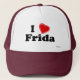 Jag älskar Frida! Är ditt namn Frida? Har du en make, en pojkvän, en male familjemedlem eller en manligvän som du vet kärlekar dig? Eller har du en fru, en flickvän, en kvinnlig familjemedlem eller en kvinnlig vän som namnges Frida som du älskar djupt? Om så, är denna "som jag älskar" hatten, exakt gåvan som du söker efter! Designen presenterar brev "mig" i svart bokstäver med en röd hjärta på det bästa och "Fridaen" i svart bokstäver på grunden.