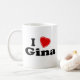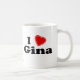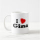 Jag älskar Gina! Är ditt namn Gina? Har du en make, en pojkvän, en male familjemedlem eller en manligvän som du vet kärlekar dig? Eller har du en fru, en flickvän, en kvinnlig familjemedlem eller en kvinnlig vän som namnges Gina som du älskar djupt? Om så, är denna "som jag älskar" muggen, exakt gåvan som du söker efter! Designen presenterar brev "mig" i svart bokstäver med en röd hjärta på det bästa och "Ginaen" i svart bokstäver på grunden.