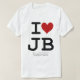 Denna skjorta har "mig älskar en JB-" logotyp tillsammans med 3 webbensidor