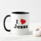 Jag älskar Jesse! Är ditt namn Jesse? Har du en fru, en flickvän, en kvinnlig familjemedlem eller en kvinnlig vän som du vet kärlekar dig? Eller har du en make, en pojkvän, en male familjemedlem eller en manlig vännen namngav Jesse som du älskar djupt? Om så, är denna "som jag älskar" muggen, exakt gåvan som du söker efter! Designen presenterar brev "mig" i svart bokstäver med en röd hjärta på det bästa och "Jessen" i svart bokstäver på grunden.