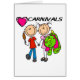 En stick figurpojke med en majhund och en stick figurflicka med en stor mjukisdjur och text, som läser på "karneval (för hjärta)" mig, älskar karnevalT-tröja, muggar, tote bags, kort, klistermärkear och andra gulliga stick figurobjekt som du kan skräddarsy med ett namn eller annan text.