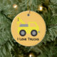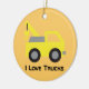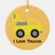 Jag älskar lastbilar, gullig gul fordonför barn julgransprydnad keramik