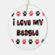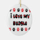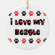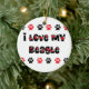 Jag älskar min Beagle! En djärv svart-vit-och-röd design som presenterar raddahjärtor och hundtass avtryck. Underbar för någon Beagleägare som älskar deras hund.