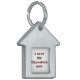 Husformad ID-märkes för husdjur tryckt med anpassningsbar mall textfras Jag älskar min chokladlabrador Add Name på Hattar, Tröjor och Husdjursprodukter av TheFabricSeal tryck på begäran butik på Zazzle.com #ZazzleMade https://www.zazzle.com/store/thefabricseal