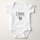 Denna söta baby bodysuit för pojkar har enkel typografi som säger "Jag älskar min mamma", accentuerad med ett blått hjärta och anpassningsbar text. Ändra texten för att skapa en unik present till en förstagångsmamma. Perfekt som gåva på Mors dag eller en babyfest. Idealisk för alla speciella tillfällen, denna personliga baby bodysuit kommer att bli en genomtänkt och minnesvärd gåva.