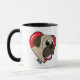 Denna tecknadmops ser så förtjusande i hans stora röda hjärta! Gulligt långt att berätta världen dig var en mopsfläkt. Animeradhunden är lismar med en svart maskerar. Avelnamn skrivs ut på det vänstert. Unika mopsgåvor för hundägare.