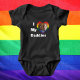 Familjer finns i alla former och storlekar. Kärlek är kärlek. En cool och fantastisk design som firar HBTQ-föräldraskap. Texten kan anpassas. Du kan ändra typsnitt, textfärg, textstorlek och flytta texten med hjälp av designverktyget. Ersätt bilden med ett foto av de stolta föräldrarna. Den minimalistiska och stiliga regnbågshjärtedesign är din att anpassa som du vill. Den kan överföras till andra produkter.