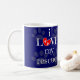 jag ÄLSKAR min räddingar, tass avtryck/röd hjärta på marinen; Dela din kärlek av rädda djuren (inte betyder aveln!), med detta gulliga rött, vit- & blåttkaffemuggen