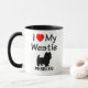 Den här anpassningsbarna "I Kärlek My Westie" mugg är perfekt för alla som kärlek a Westie hund, även känd som Väster Highland White Terrier, bara byter till sin egen hund namn.