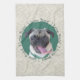 Den förtjusande kökshandduken med en bild av en mops med henne den långa tungan som ut hänger med förse med text "älskar jag, mops!",