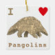 En söt gående pangolin, en illustration som kommer att fånga allas uppmärksamhet. Pangolinen är förmodligen det sötaste djuret du aldrig hört talas om eftersom pangolinen är en mycket utrotningshotad art. Här är en chans att kämpa för saken och synliggöra detta vackra djurs svåra situation som når 10 på söt-skalan. Denna söta pangolin i gyllenbruna nyanser visar den invecklade kroppspansaret hos pangolinen. Det röda kärlekshjärtat och bruna slagordet "I Love Pangolin" kan anpassas med hjälp av den medföljande mallen för att skapa din egen utsmyckning till julgranen för hotade djurarter. Illustration av utrotningshotad pangolin, miljötjänst, djurkonst och natur av konstnären Catherine Sweetman.