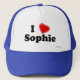 Jag älskar Sophie! Är ditt namn Sophie? Har du en make, en pojkvän, en male familjemedlem eller en manligvän som du vet kärlekar dig? Eller har du en fru, en flickvän, en kvinnlig familjemedlem eller en kvinnlig vän som namnges Sophie som du älskar djupt? Om så, är denna "som jag älskar" hatten, exakt gåvan som du söker efter! Designen presenterar brev "mig" i svart bokstäver med en röd hjärta på det bästa och "Sophien" i svart bokstäver på grunden.