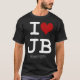 Denna skjorta har "mig älskar en JB-" logotyp tillsammans med 3 webbensidor